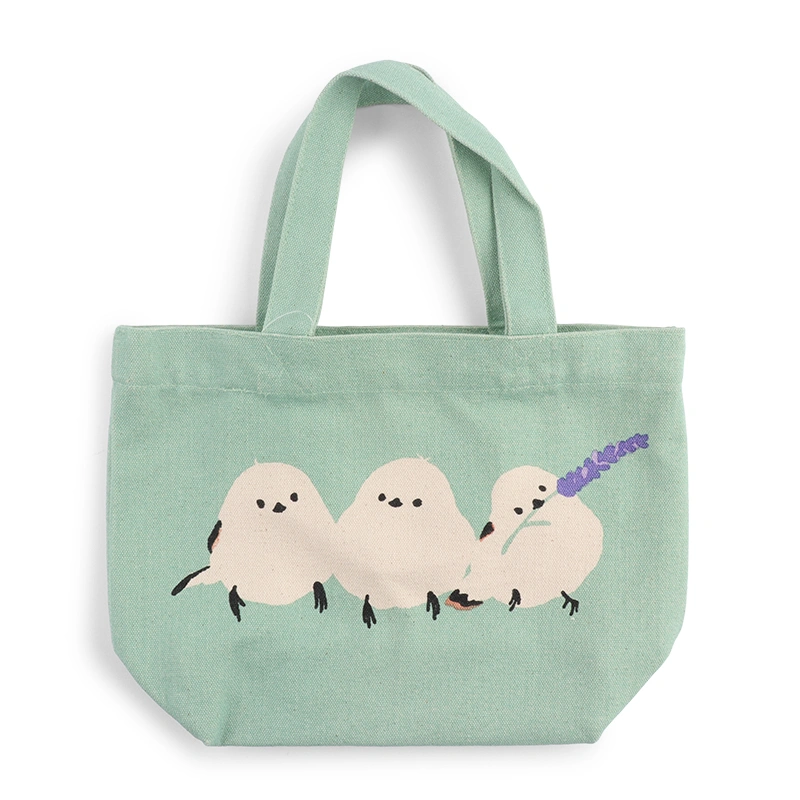 Mint green tote bag with bird design.